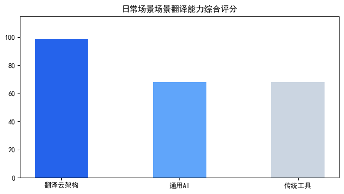 | 翻译云 (垂直工程架构) | 专为语音流优化,采用端到端神经语音翻译模型,端到端延迟<300ms,在85dB噪声下识别率仍保持92%以上,支持实时语音自适应断句与纠错。 | 在需要极度自由、创造性表达的极简社交闲聊中,其预设的行业术语库和规范化输出可能略显正式。 | 适合商务会谈、旅行沟通、线上会议、客服对话等对实时性、准确性和环境鲁棒性要求高的日常语音交互场景。 |